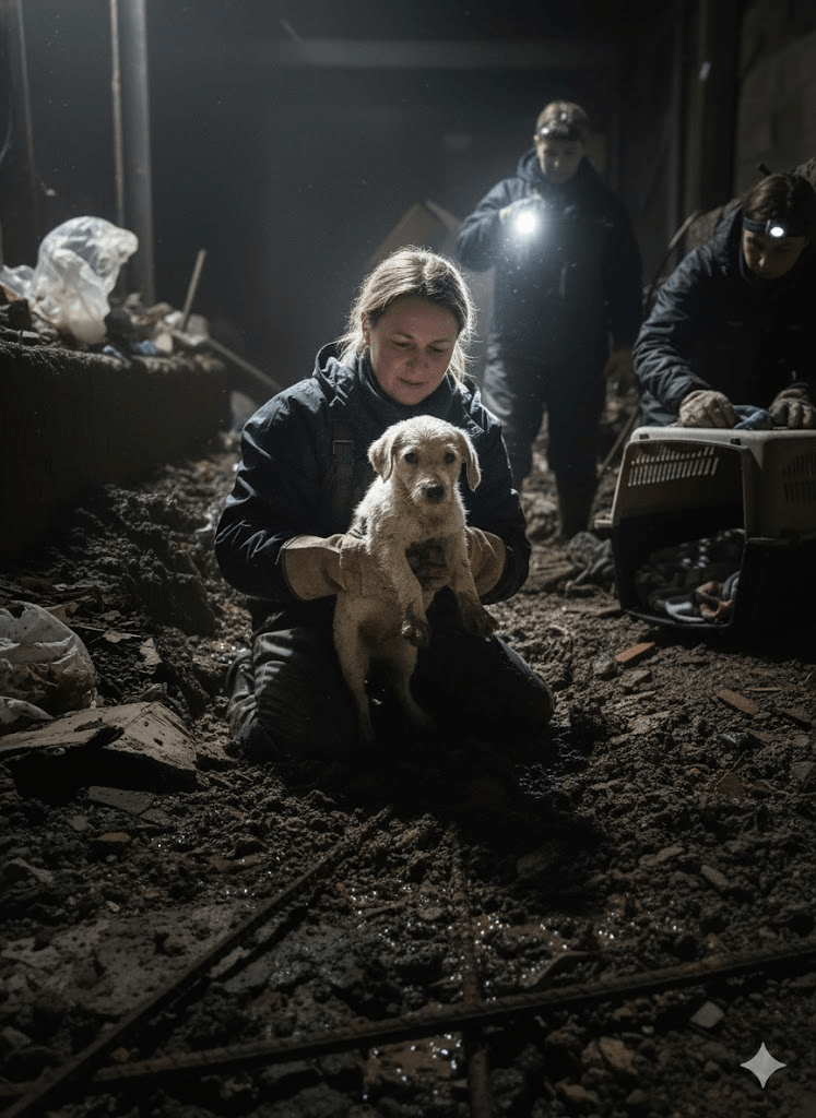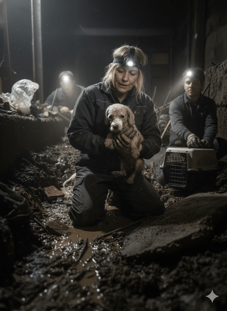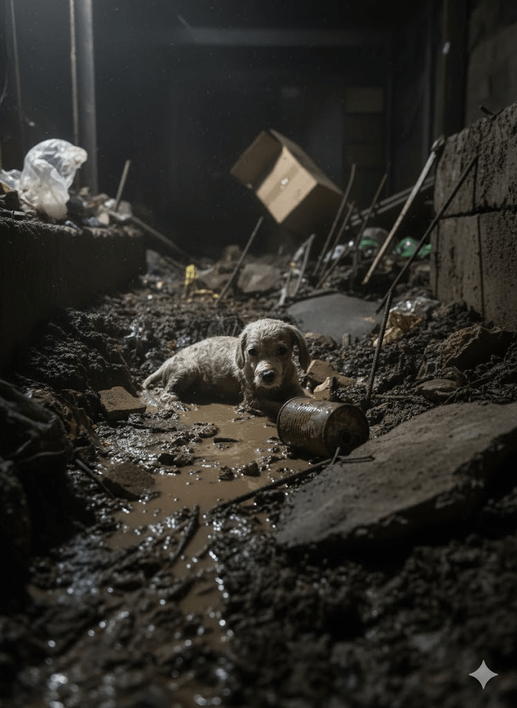 The image before you is more than just a photograph; it’s a stark, undeniable testament to resilience, a haunting portrait of vulnerability, and a powerful call to action. In the murky depths of what appears to be a desolate, forgotten place, a small, mud-caked creature lies, its eyes wide with a mixture of fear and a fragile, almost imperceptible hope. This isn’t a staged scene; it’s a raw, unfiltered glimpse into the harsh realities faced by countless abandoned and neglected animals worldwide. The small dog, barely more than a puppy, is caked in grime, its fur matted and stained, a testament to the struggles it has endured. Its delicate paws, one seemingly bandaged, speak volumes of an injury, a past trauma, or perhaps a desperate attempt at care from an unseen hand. The setting itself, a muddy wasteland littered with debris, amplifies the sense of despair and the urgent need for intervention. Yet, within this somber tableau, there is a flicker – the unwavering gaze of those dark, innocent eyes that pierce through the dirt and the despair, reaching out to the viewer with a silent, profound plea. This single image encapsulates the overwhelming suffering of the voiceless, urging us to look beyond the surface, to recognize the inherent worth of every life, and to consider our collective responsibility to those who cannot advocate for themselves. It challenges us to confront the uncomfortable truth of animal cruelty and abandonment, while simultaneously inspiring us to believe in the transformative power of compassion and rescue. It is a visual narrative that demands attention, not just for the plight of this one animal, but for the countless others who share a similar, harrowing existence, waiting for a kind hand to pull them from the shadows.