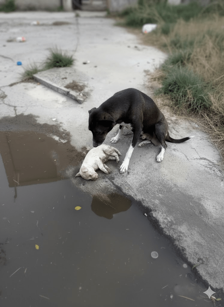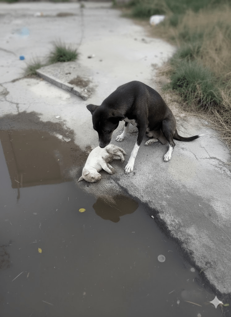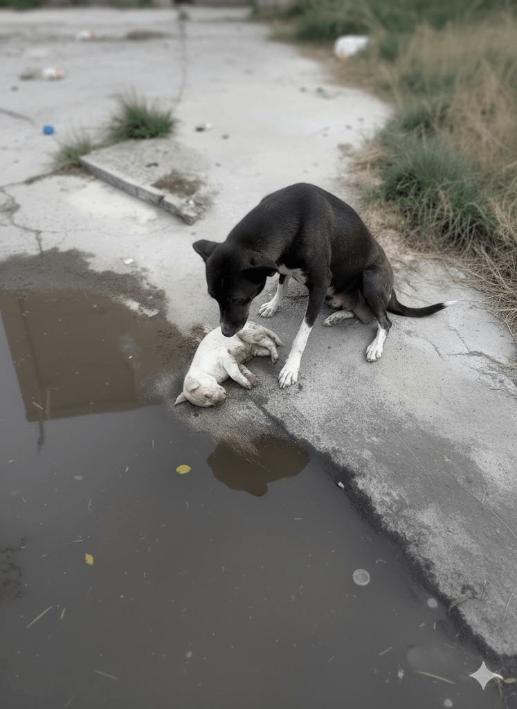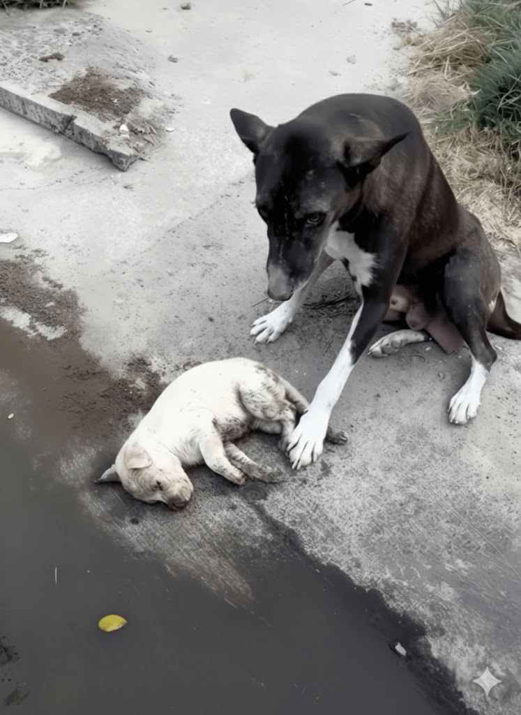 The stark reality captured in this poignant image transcends a mere snapshot; it is a profound narrative of maternal love, resilience, and the raw, unvarnished struggles faced by countless animals in our world. The weary gaze of the mother dog, her paw gently resting beside her motionless pup, speaks volumes without uttering a single sound. Her posture, a protective arch over the vulnerable form, embodies an instinctive, unwavering devotion that defines the very essence of motherhood. This isn’t just a scene of a dog and her offspring; it’s a window into the silent suffering, the deep bonds, and the tireless fight for survival that unfolds daily, often unnoticed, in the periphery of human existence. It compels us to pause, to feel, and to confront the often-uncomfortable truths about the lives of stray and neglected animals, urging us to consider our collective responsibility towards these sentient beings. The muddy ground, the desolate surroundings, and the evident exhaustion etched on the mother’s face all contribute to a powerful visual testament to the arduous journey of survival, highlighting the dire need for compassion and intervention.
