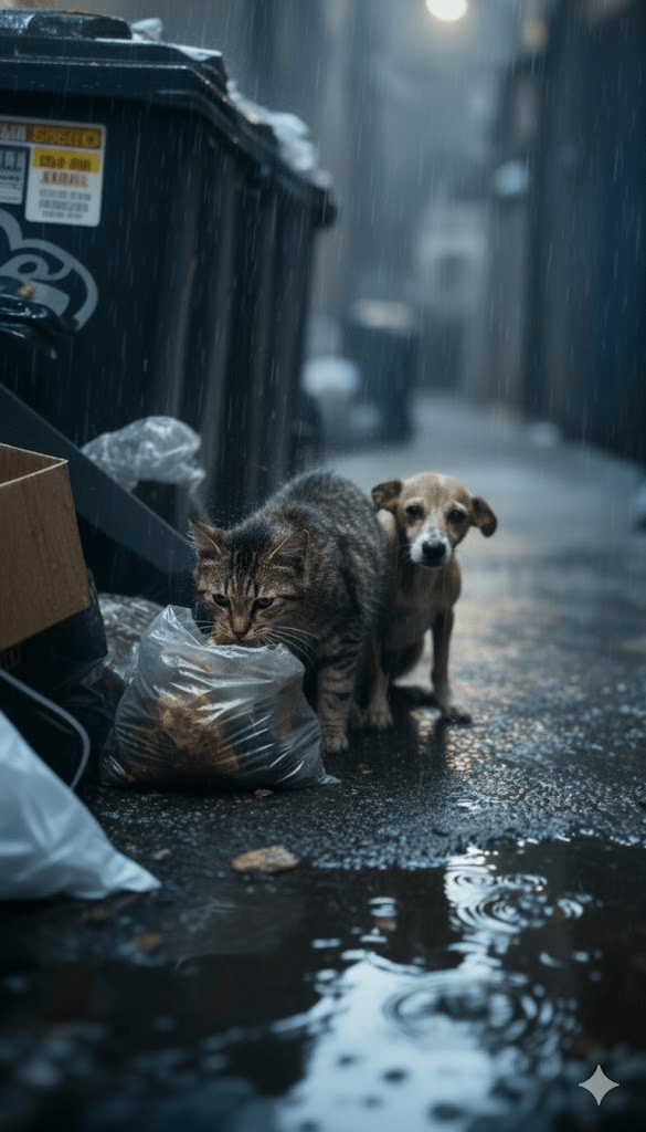 For stray animals, life is a perpetual struggle for survival. They face constant exposure to extreme weather conditions, whether it’s the biting cold of winter, the scorching heat of summer, or relentless downpours like the one depicted in the image. Finding shelter is a daily challenge, often leading them to seek refuge in dangerous places like under cars, in abandoned buildings, or behind dumpsters, increasing their risk of injury or worse. Access to clean water and food is scarce, pushing them to scavenge in garbage, consume contaminated substances, or go for extended periods without sustenance. This chronic malnutrition weakens their immune systems, making them susceptible to a host of diseases, from parasites and infections to more serious conditions like distemper and parvovirus, often without any medical intervention.