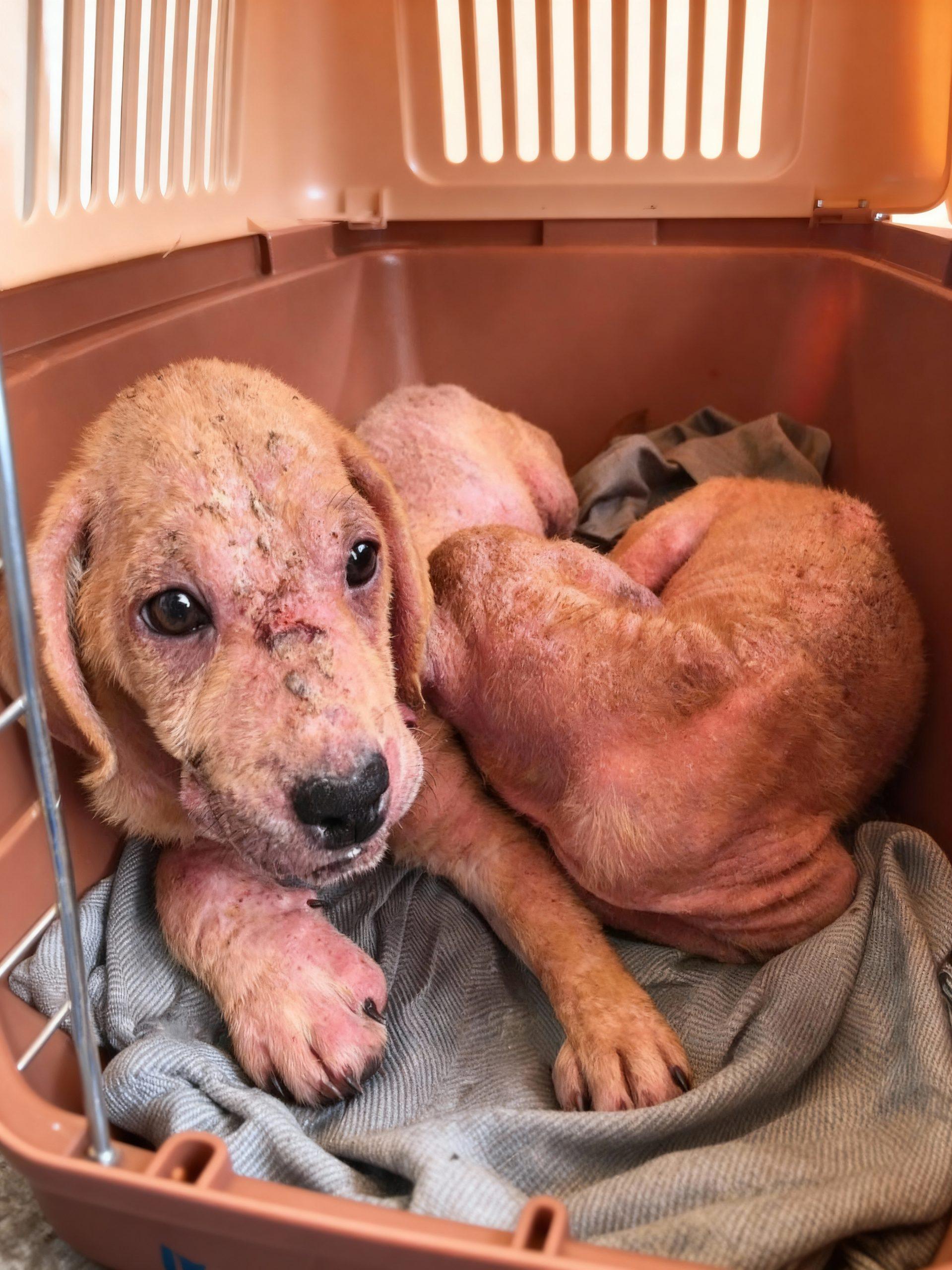 The image above tells a profound story without uttering a single word. It depicts a young puppy, its skin raw…