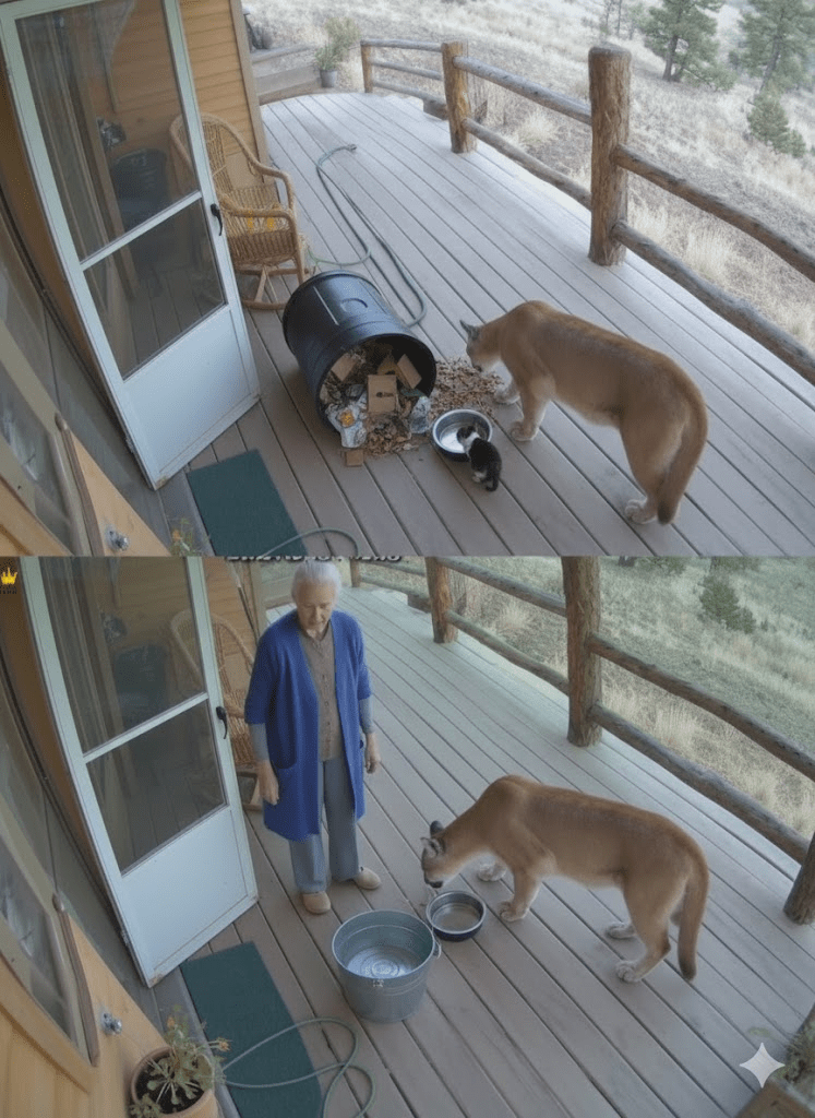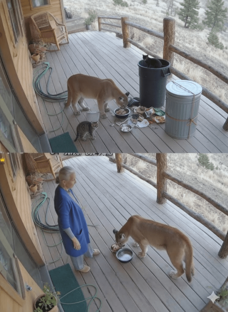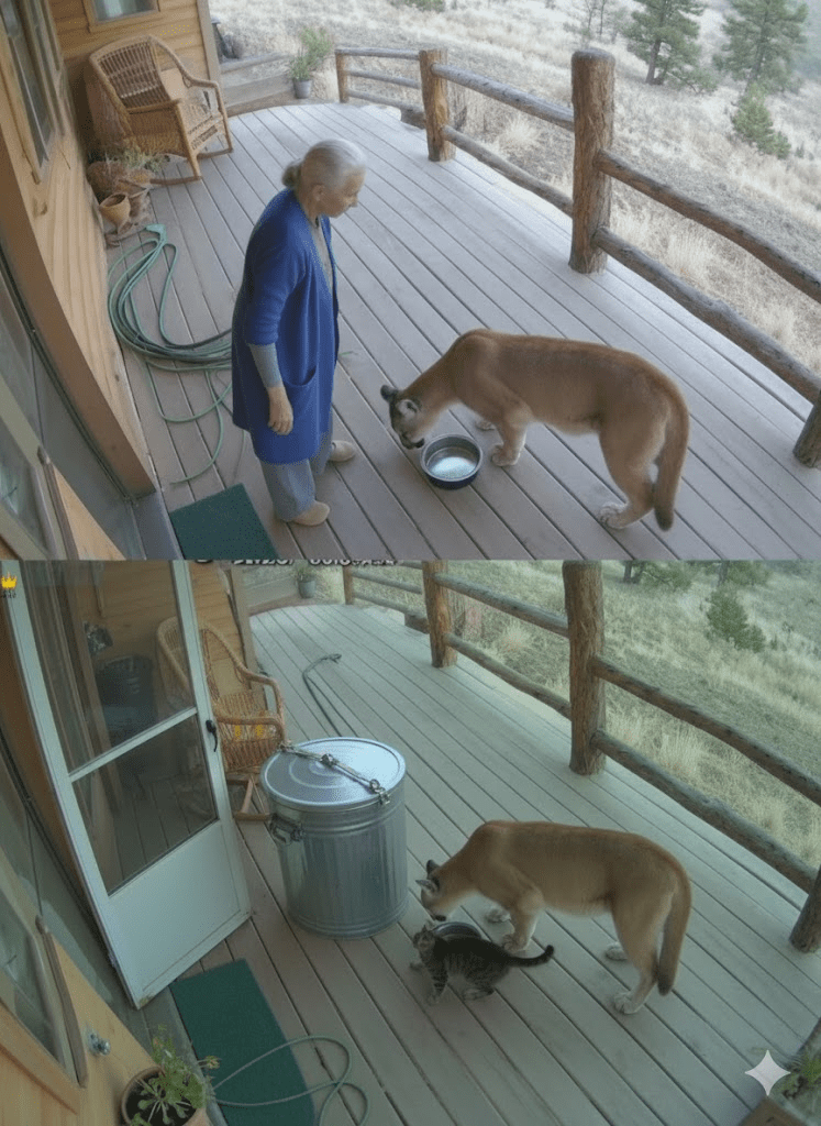 The woman in the image displays a remarkable calmness, which is both admirable and concerning. While it’s generally advised to avoid any direct engagement with pumas, her composure might suggest a prior, albeit likely infrequent, history with this particular animal or a deep understanding of wildlife. However, it’s critical to remember that pumas are powerful and unpredictable wild animals. Their behavior can change in an instant, especially if they feel threatened, cornered, or if their young are perceived to be in danger. Maintaining a safe distance and observing from afar, ideally from indoors or a secure vehicle, is always the safest course of action when encountering a large predator.