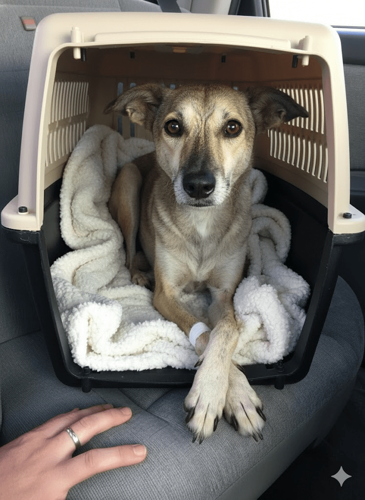 The image before us is a stark, poignant tableau, capturing a moment of profound vulnerability that speaks volumes without a single uttered word. In the dimly lit interior of what appears to be a car, a severely emaciated canine lies curled on the back seat, a fragile bundle of bones and matted fur. Its ribs protrude with alarming clarity, a skeletal roadmap etched beneath its thin coat, bearing witness to a prolonged and agonizing struggle against starvation. The dog’s head is drooped, its gaze, if visible, would undoubtedly convey a deep weariness, perhaps even a resignation that only the most neglected creatures can truly know. A small white bandage, stark against its muted fur, hints at recent medical intervention, a beacon of hope in an otherwise desolate scene. The setting—an ordinary car seat—serves to amplify the extraordinary plight of this animal, underscoring how easily such suffering can occur in the most mundane of environments. This photograph is more than just a picture; it is an urgent appeal, a silent scream for compassion and action, urging us to look beyond the frame and confront the grim reality of animal abandonment and neglect. It challenges us to consider our collective responsibility towards creatures who depend entirely on human kindness for their survival and well-being.
