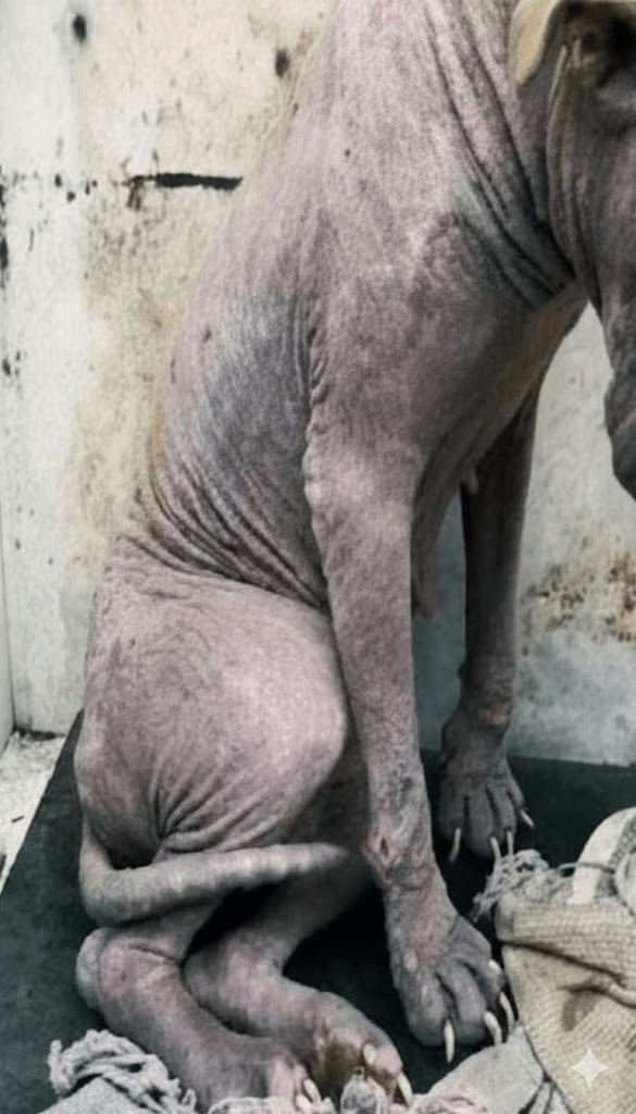 The image before us is a stark, poignant portrait of vulnerability. A dog, stripped bare of its fur, its skin a canvas of hardship, sits hunched in what appears to be a small, confining space. Its posture speaks volumes: a bowed head, a defeated slump, conveying a profound sense of sadness and abandonment. This is not just a picture; it is a silent plea, a testament to the suffering that countless animals endure, often unseen and unheard. The raw honesty of this single frame compels us to look closer, to understand the story it tells, and to acknowledge the responsibility we bear towards these voiceless creatures. It challenges us to move beyond mere observation and to consider the actionable steps we can take to alleviate such distress and to foster environments where every animal can thrive, not merely survive. This image, while heartbreaking, also holds the potential to be a catalyst for change, a powerful symbol of the urgent need for compassion, intervention, and the enduring power of hope.