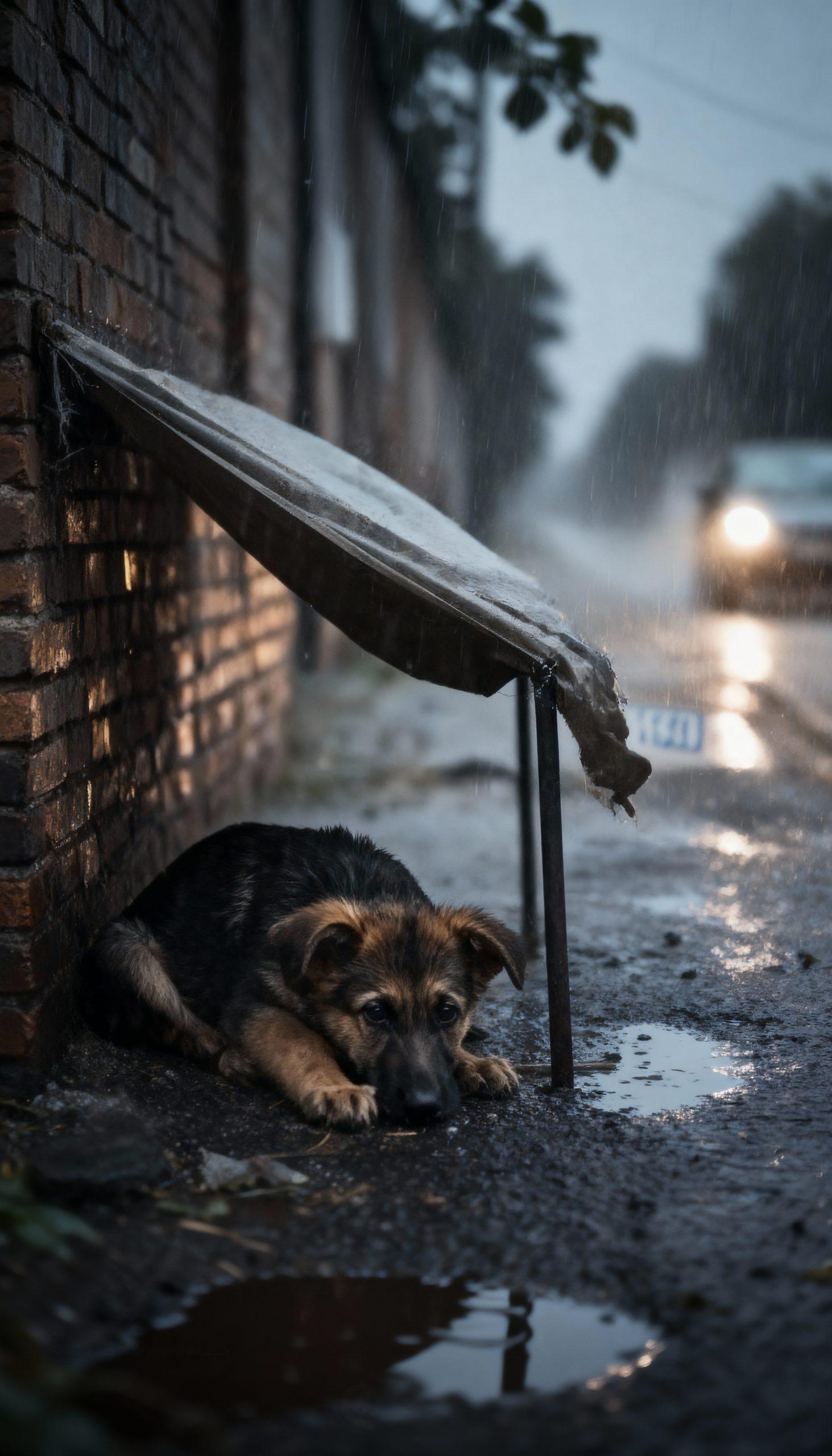 The image of a lone puppy, huddled under a makeshift shelter against the relentless rain, speaks volumes without uttering a…