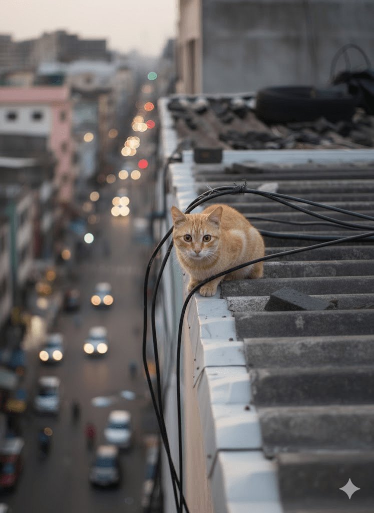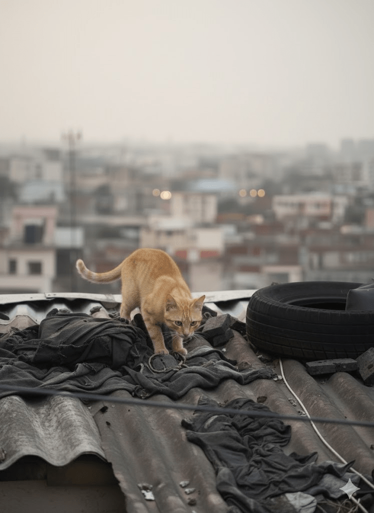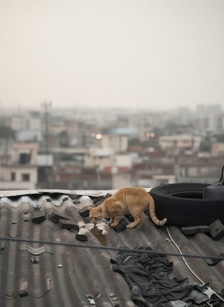In the heart of bustling urban landscapes, amidst the cacophony of city life and the relentless march of human activity, there exists a hidden world, a subculture of survival often overlooked by the hurried passerby. This world unfolds on the corrugated iron rooftops and forgotten ledges, where a surprising ecosystem thrives. Our particular focus today is on the domestic cat, Felis catus, an animal renowned for its adaptability, yet whose capacity for resilience truly shines in these elevated, often harsh environments. The image before us offers a poignant snapshot into this reality: an ginger cat, curled contentedly on a pile of dark fabric, atop a weathered corrugated roof, surrounded by debris that hints at neglect and the constant struggle against the elements. This isn’t a pampered house cat dozing in a sunbeam; this is a survivor, a testament to the enduring spirit of life finding a way, even in the most unpromising of circumstances. The tire, the loose bricks, the tangled wires—all speak to a narrative of resourcefulness, where discarded human artifacts become part of the feline habitat, offering shelter, warmth, or simply a vantage point. The very existence of this cat, seemingly at peace in its unconventional haven, prompts a deeper inquiry into the lives of urban rooftop dwellers and the unique challenges and adaptations that define their daily existence. We will delve into how these animals navigate their precarious perches, what their presence reveals about urban ecology, and how their quiet survival stories unfold, day after day, high above the streets we traverse.