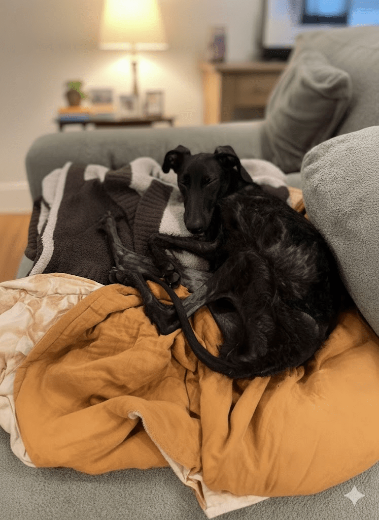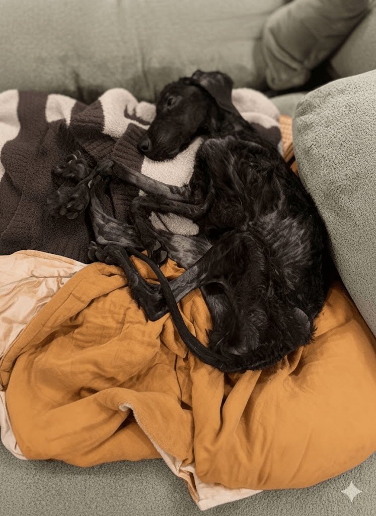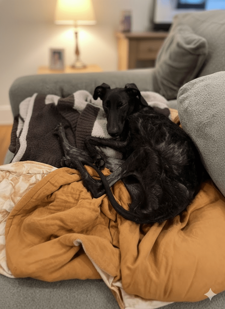 In the tapestry of our daily lives, the image of a deeply sleeping dog often evokes a profound sense of peace and contentment. The accompanying photograph perfectly captures this sentiment: a lanky, dark-coated dog, possibly a lurcher or a similar sighthound mix, curled tightly on a medley of soft fabrics – a textured brown and white blanket nestled against a warm ochre throw. Its posture speaks volumes, a testament to absolute relaxation, with limbs tucked in, eyes closed, and a gentle stillness permeating its form. This isn’t just a casual nap; it’s a deep, restorative slumber, highlighting the essential role of comfort and security in a dog’s life. Observing such a scene offers us a window into the nuanced world of canine well-being, reminding us that beyond food and exercise, the quality of their rest profoundly impacts their physical health, emotional stability, and overall happiness. It challenges us to look beyond the surface and consider the subtle cues our pets give us regarding their needs for an optimal environment that fosters true serenity.