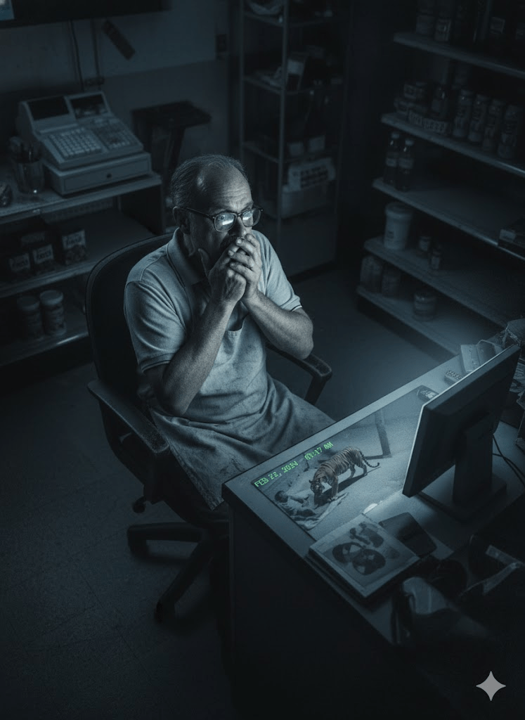 By dawn, the mysterious companion had vanished as silently as it appeared, leaving Arthur to awaken to the usual harsh reality of his surroundings, unaware of the extraordinary embrace he had shared. The next morning, however, unfolded a chilling revelation for Mr. Henderson, the owner of the convenience store whose security camera overlooked the alley. Reviewing the previous night’s footage, he initially scoffed at the blurry, striped form approaching the sleeping man, assuming it was a trick of light or a large raccoon. But as the image sharpened, and the unmistakable silhouette of a majestic Bengal tiger filled the screen, Henderson’s casual viewing turned to horror.