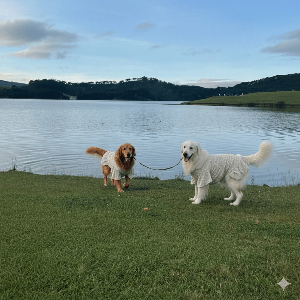 The picturesque scene of two golden retrievers, adorned in charming, matching outfits, sitting serenely by a tranquil lake, encapsulates more than just a beautiful moment; it speaks volumes about the profound connection between humans, their beloved canine companions, and the restorative power of nature. In an increasingly fast-paced world, moments of peace and genuine connection are precious. This image serves as a gentle reminder of the simple joys found in companionship and the great outdoors. Golden Retrievers, known for their friendly demeanor, intelligence, and unwavering loyalty, embody the ideal partner for such serene escapades. Their presence by the water, with rolling hills in the background, not only highlights their inherent beauty but also underscores the importance of providing our pets with environments that cater to their well-being and natural instincts. This article delves into the multifaceted benefits of outdoor adventures for dogs, the unique characteristics that make Golden Retrievers exceptional companions, and how these experiences foster a deeper bond between pets and their owners, all while drawing inspiration from the tranquil elegance of our opening image.