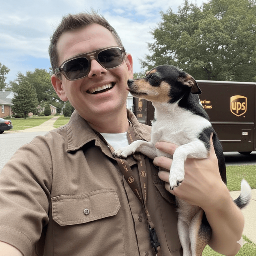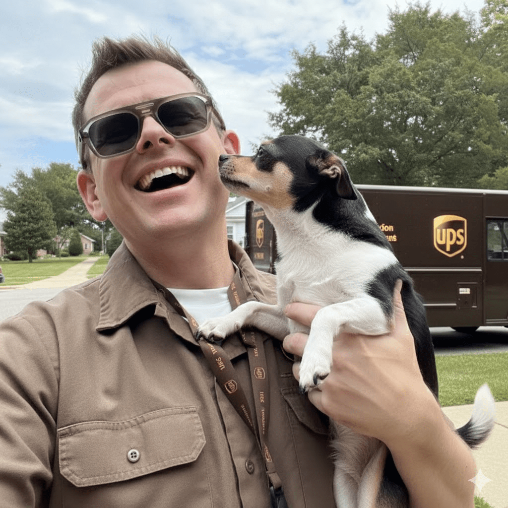 In a world that often demands professionalism and a stoic demeanor, moments of unadulterated joy and playful affection can be rare and incredibly precious. The accompanying image beautifully captures such a moment: a man, likely a UPS driver given the uniform hints, making a silly face with his tongue out, while a small, adoring dog enthusiastically licks his face. This simple, heartwarming interaction speaks volumes about the unique bond between humans and their animal companions. It’s a candid snapshot of genuine connection, a brief respite from daily routines that underscores the profound emotional benefits pets bring into our lives. Beyond the immediate cuteness, this image serves as a powerful reminder of how pets provide unconditional love, reduce stress, and foster a sense of well-being, often bringing out a side of us that is more relaxed, joyful, and utterly human. It highlights the often-unseen moments of personal connection that punctuate even the busiest of days, enriching lives in ways that professional achievements often cannot.