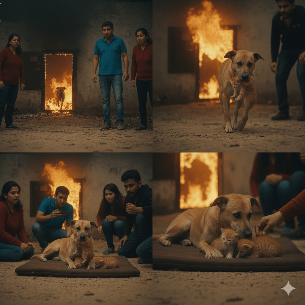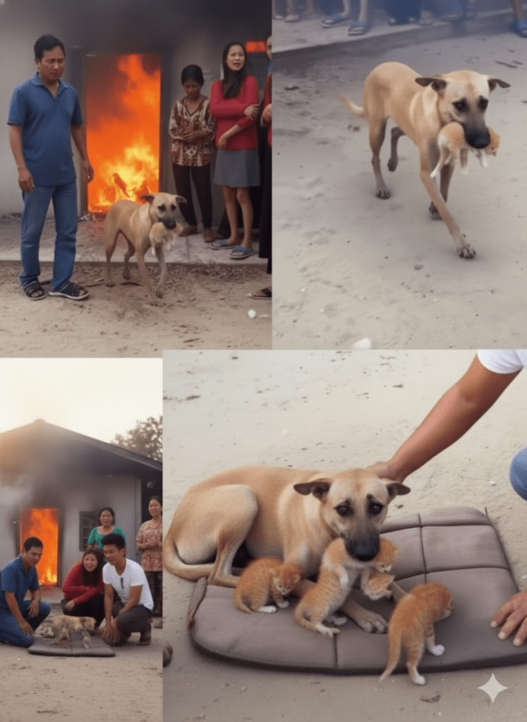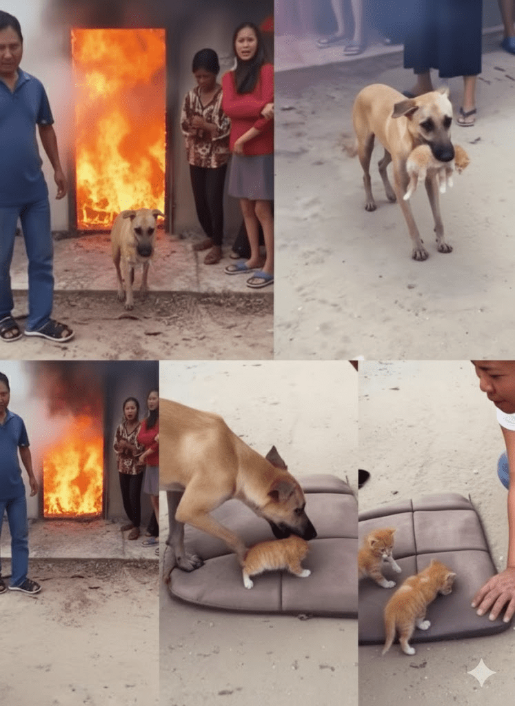 In moments of peril, when chaos reigns and instinct takes over, we often witness extraordinary acts of bravery. While human heroism frequently captures headlines, the animal kingdom also offers countless examples of selfless courage, often in defense of those they perceive as their own, regardless of species. The accompanying image composite beautifully encapsulates such a narrative, showcasing a remarkable dog venturing into a burning structure not once, but multiple times, to rescue a litter of kittens. This heart-wrenching yet inspiring visual record serves as a powerful testament to the deep-seated protective instincts that can emerge in the face of disaster, reminding us that compassion and courage are not exclusive to one species. The scene unfolds with an urgency that is palpable: flames engulfing a doorway, human onlookers frozen in a mix of fear and concern, and at the center of it all, a loyal canine defying danger, driven by an innate desire to save vulnerable lives. This particular incident, while striking, is not an isolated event but rather a poignant illustration of a broader phenomenon—the incredible capacity for empathy and bravery displayed by animals when faced with extreme circumstances. It compels us to look beyond conventional understandings of interspecies relationships and appreciate the profound connections that can form, ultimately challenging our perceptions of heroism itself.